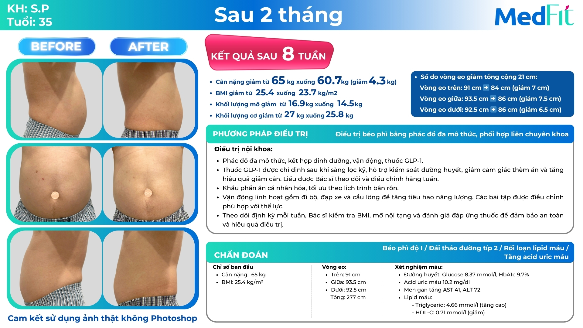 Không có bệnh đi kèm và chưa từng giảm cân